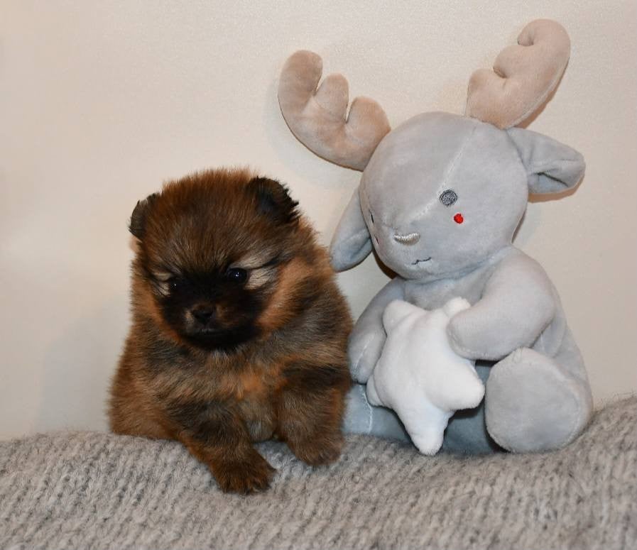 Très belle poupée d'un orange flamboyant. Pleine de vie, espiègle, curieuse, câline. Une petite boule d'énergie. A l'heure actuelle aucun défaut, pourrait convenir parfaitement pour une carrière d'expositions.